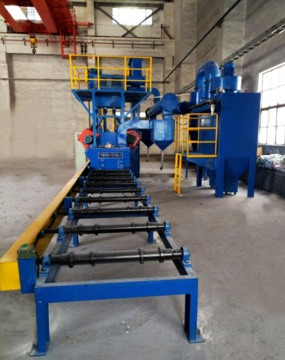 鋁廠電解槽進行安裝和大修時,本設備主要功能是對陰極鋼棒表面進行除銹處理。本機組能同時清洗二根長方形鋼棒,兩根鋼棒呈兩列并排放置,由天車將鋼棒送至本機組的前運輸機輥道上,通過傳動鏈使鋼棒沿著輥軸表面前進,而后進入鋼棒清洗機清洗表面銹跡。